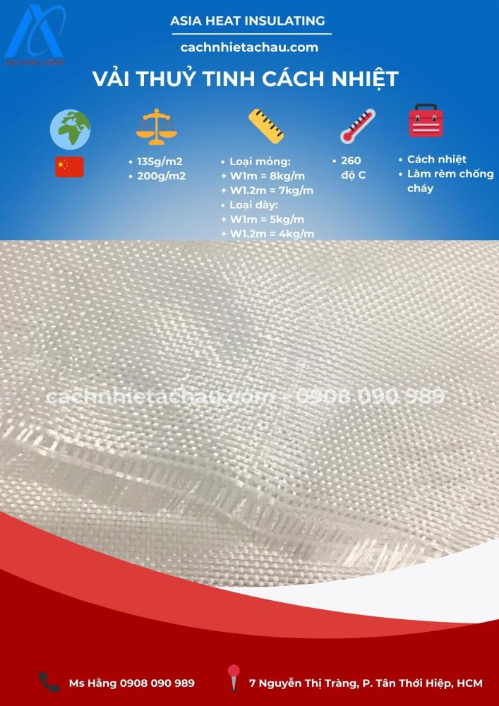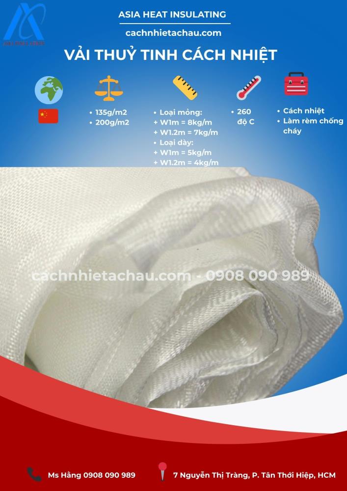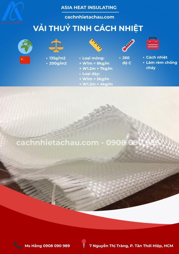Ms Hằng: 0908 090 989Các đặc tính riêng biệt của sợi thủy tinh là không cháy, cách nhiệt, tiêu âm, giảm ồn, không bị mục, không đàn hồi, chống ăn mòn, chịu được sức kéo 7400kg/m2.